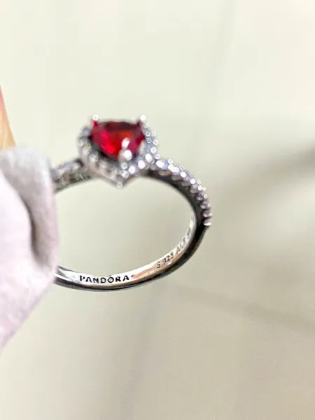 "الحب في انتظارك مع هذا الخاتم باندورا - قلب أحمر متألق مرتفع. تشكّل الترصيع بالكريستال اللامع حلقة متلألئة حول الإصبع. يتم صناعة الكريستال الأحمر بشكل قلب برفق لتسليط الضوء على جانبه الرومانسي. يتم نقش شعار باندورا داخل الخاتم المصنوع من الفضة الاسترليني لمسة من الأصالة." افضل هدية لمن تحب