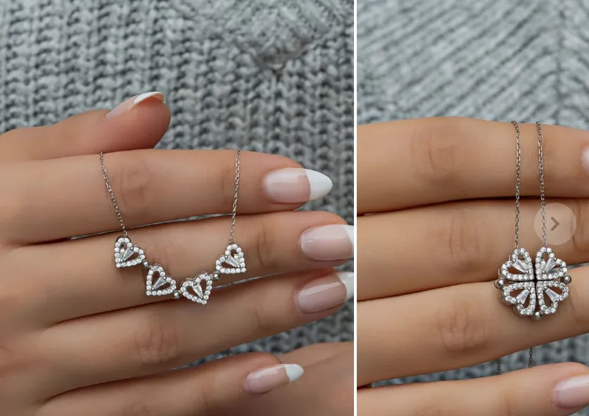 ✨ Collier Coeur Magnétique 2 en 1 en Argent Rhodié 925 le meilleur cadeau à ton copaine
