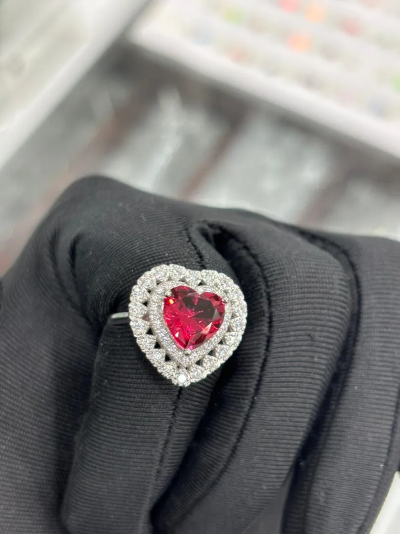 Dites au monde entier que vous croyez en l’amour avec notre Bague Cœur Rouge Surélevé. Un cristal de synthèse rouge en forme de cœur repose au centre de la bague, rehaussé par un pavé étincelant dans la monture et à l'avant de l'anneau.
