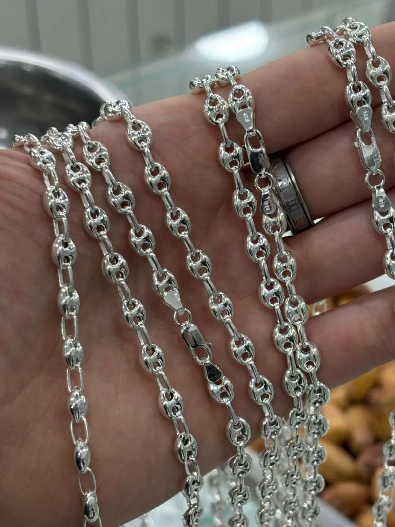 Collier Argent Blanc 925/1000 Maille Grain De Cafe Epaisseur 6mm 50cm