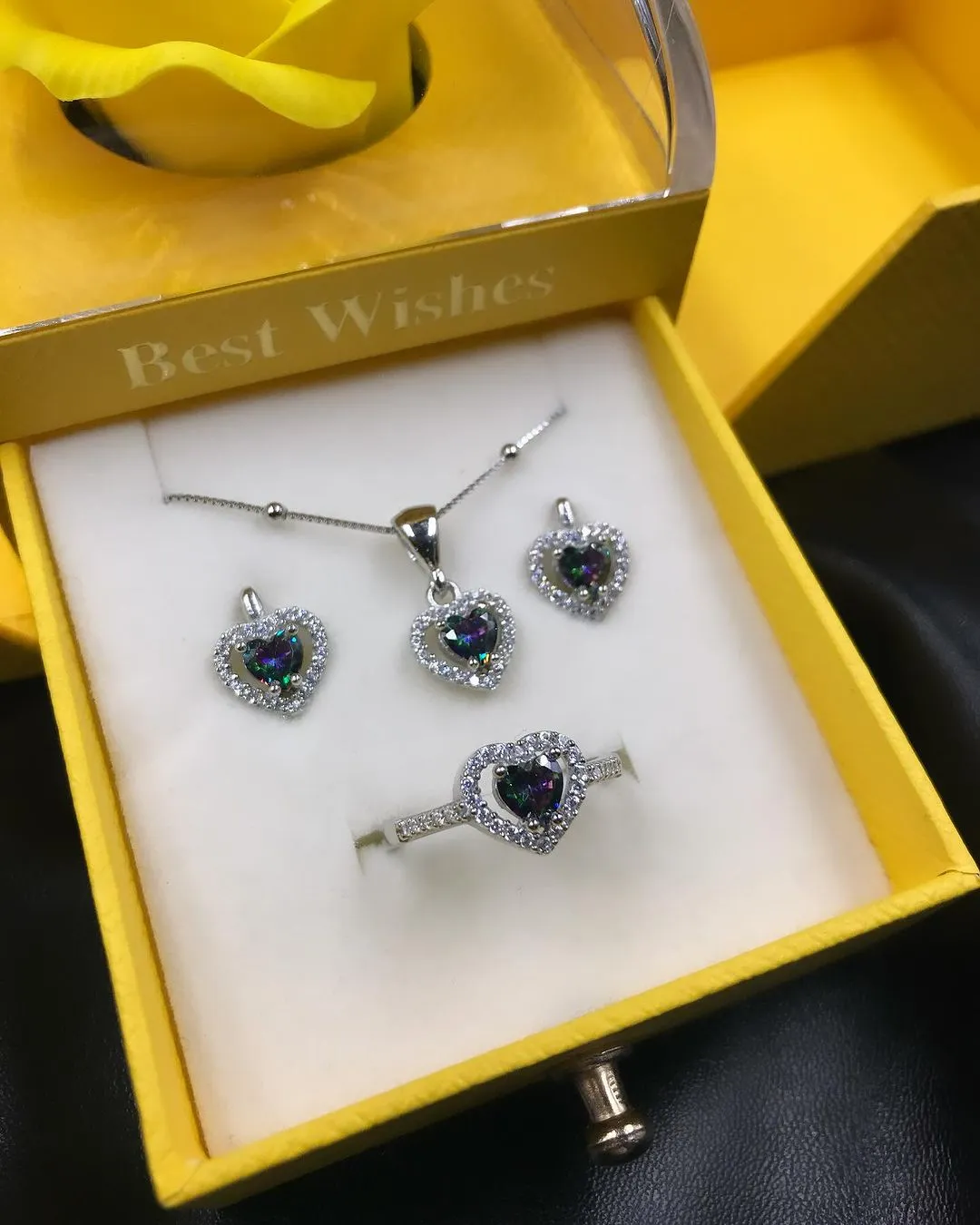 طقم فضة مودال Pandora من الفضة الخالصة مكون من خاتم . قلادة وطقم اذن من الفضة الحرة الخالصة وب ستايل الاكثر شهرة هذا العام ❤️