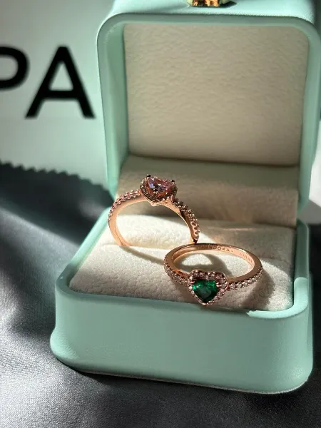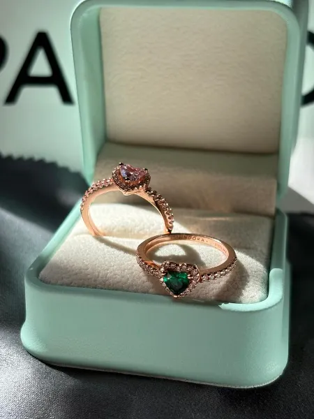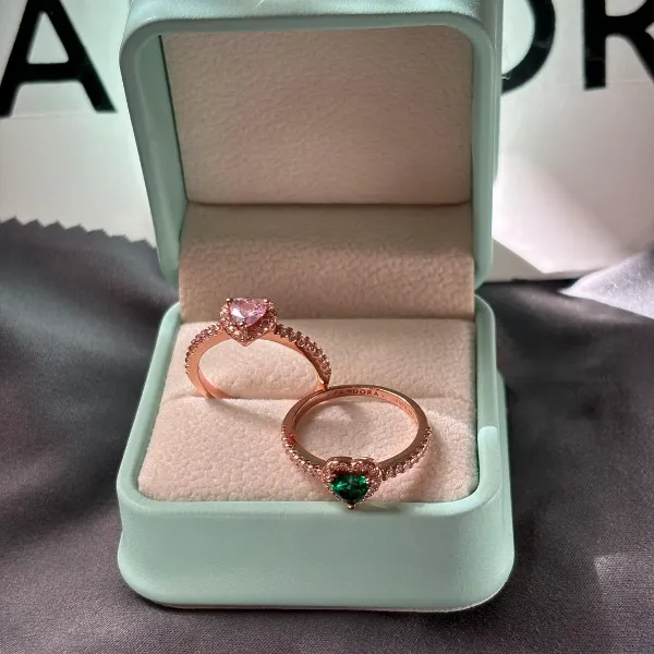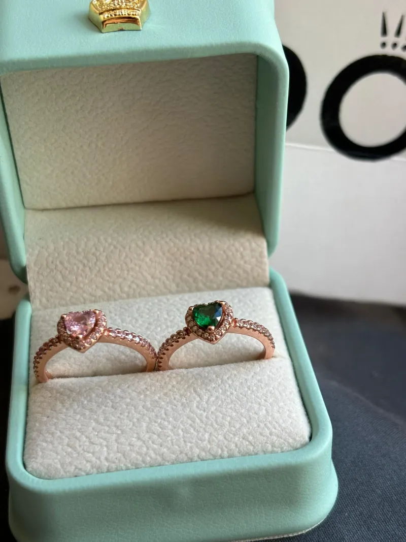 "Bague Pandora en forme de cœur avec perles roses et vertes : une élégante fusion de douceur et de fraîcheur, pour exprimer votre amour avec style." SAC PANDORA + BOITE GRATUITE
