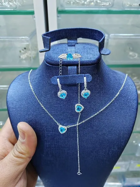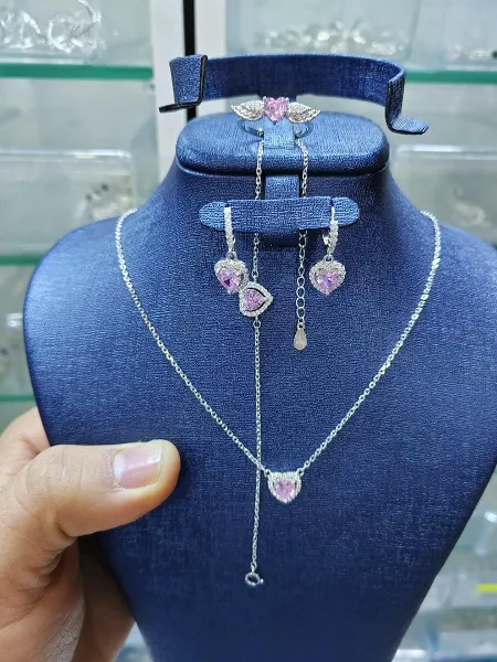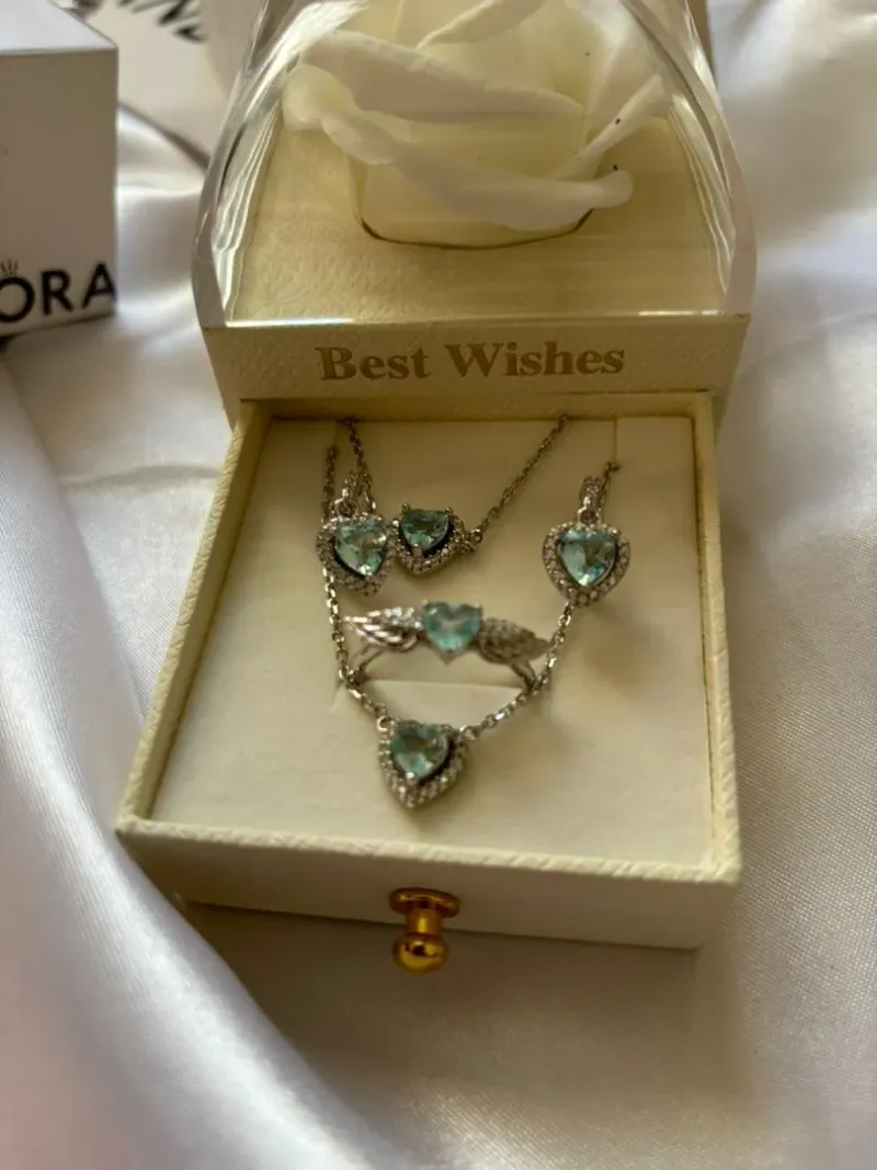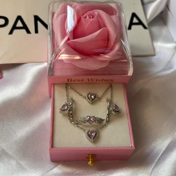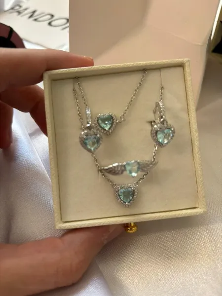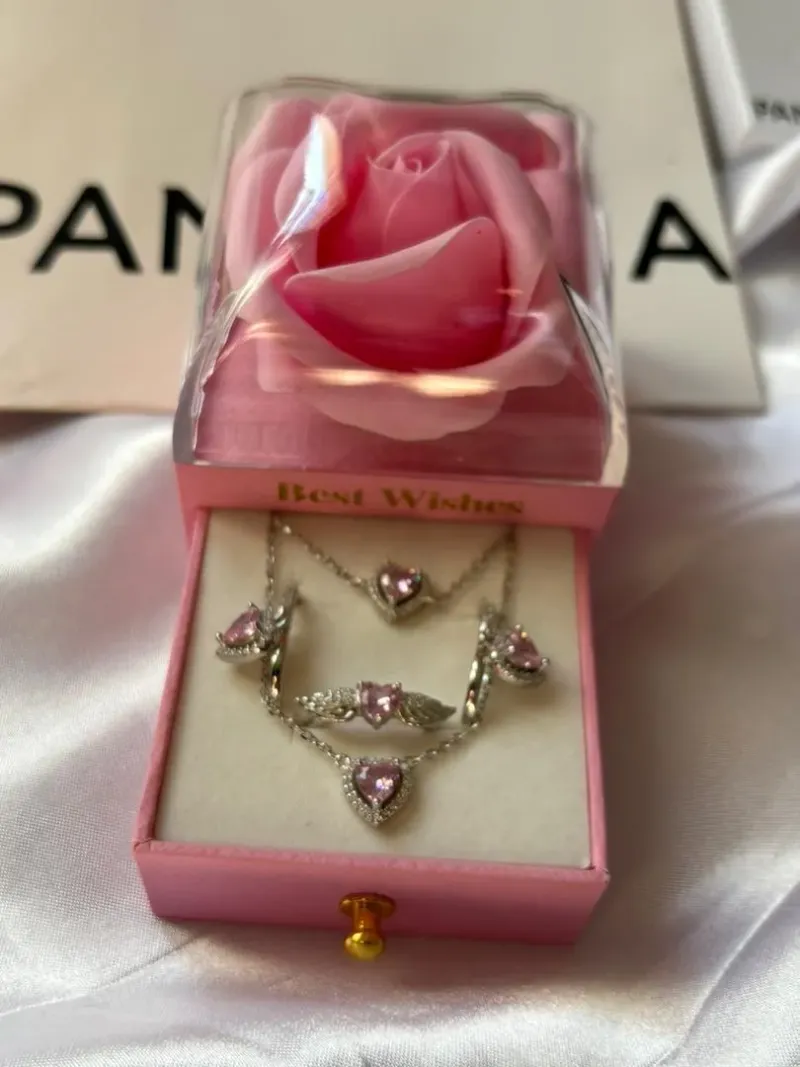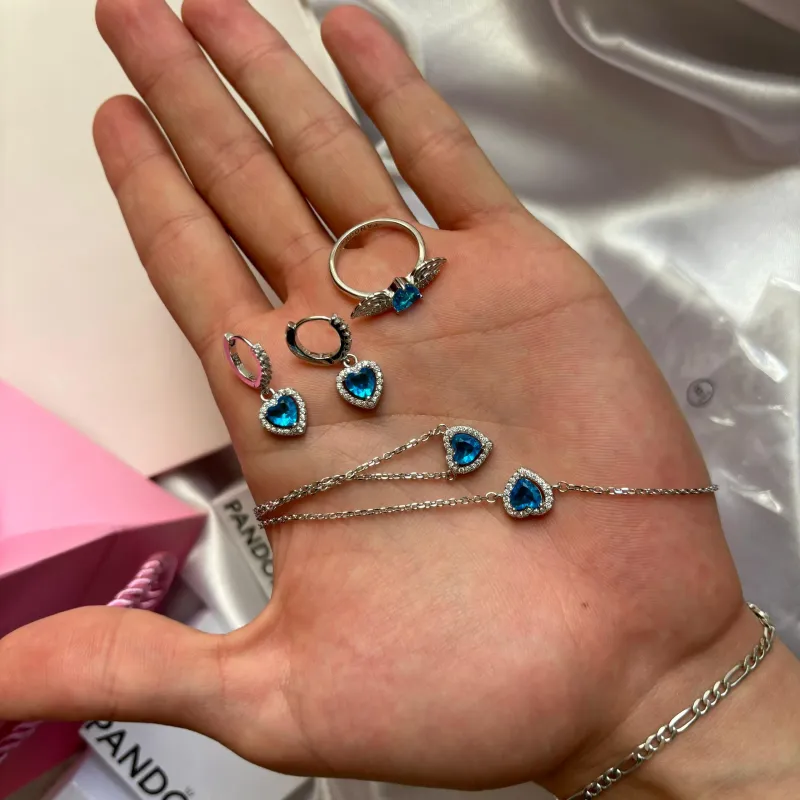 طقم فضة مودال Pandora من الفضة الخالصة مكون من خاتم . قلادة ,براسلي وطقم اذن من الفضة الحرة الخالصة وب ستايل الاكثر شهرة هذا العام ❤️
