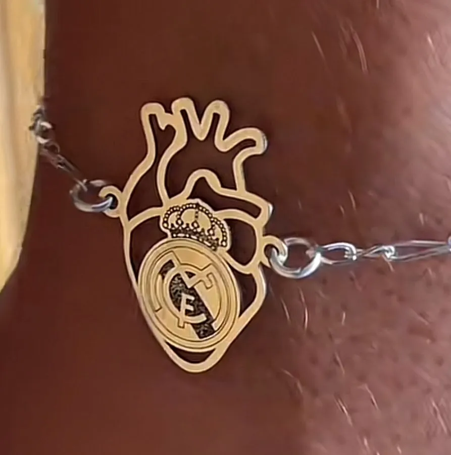 ريال مدريد، الفريق الملكي الذي يسحر القلوب 👑⚪️. جبنالك سوار من الفضة النقية بشعار ريال مدريد المذهل ⚪️💙، مزين بنجمات تضيء حبك للفريق الملكي، بالإضافة إلى سوار Cartier الرائع😍. سيزيد هذا السوار من جمالك ويعبر عن ولائك للنادي الملكي. اطلب الآن واجعل حبك للملكي يلمع! ⭐️