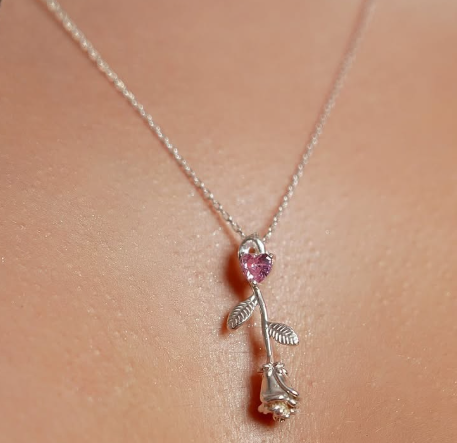 قلادة ورود الحب من الفضة الحرة مصنوعة خصيصا لتكون افضل هدية لمن تحب على شكل وردة من الفضة +حجرة وردية تزين القلادة مودال حصري من تصميمنا وصناعتنا لن تجده في مكان اخر